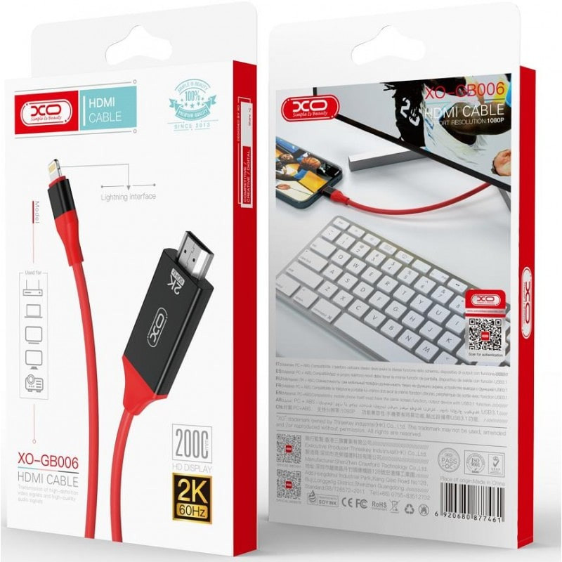 کابل تبدیل HDMI به لایتنینگ ایکس او مدل GB006  طول 2 متر