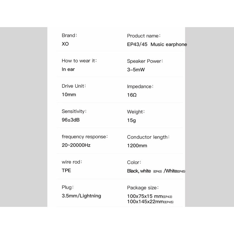 هندزفری باسیم ایکساو دارای کانکتور Lightning و قابل استفاده برای دستگاههایی با این ورودی است؛ با توجه به حذف شدن درگاه جک 3.5 میلیمتری از تولیدات سری 7 به بعد گوشیهای آیفون، شرکت ایکساو این هدفون سیمی را طراحی کرده تا کاربران بدون نیاز به داشتن مبدل صدا بتوانند به طور مستقیم آن را به موبایل خود متصل کنند.هندزفری سیمی ایکساو ساخته شده از مواد مرغوب TPE بوده از انعطاف و مقاومت بالایی در برابر آسیب برخوردار است. از نوع درون گوش بوده و به دلیل وزن 15 گرمی و طراحی ارگونومیک در استفاده طولانی مدت باعث خستگی یا اذیت نخواهد شد. طول سیم آن هم برابر با 1.2 متر است.