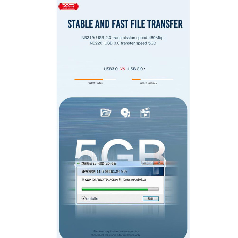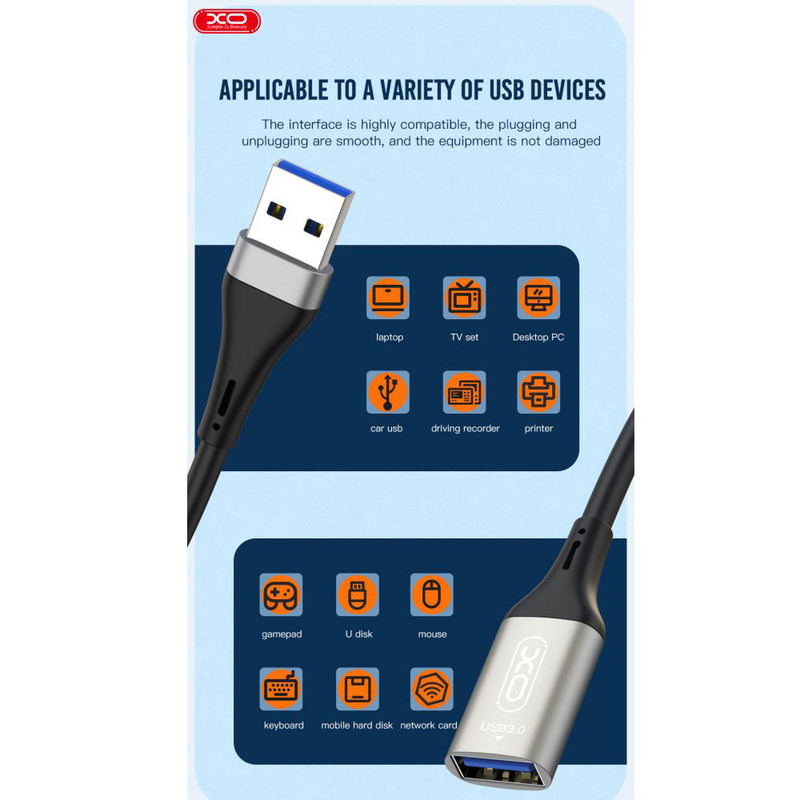 کابل تبدیل usb به usb3.0 ایکس او مدل NB220 طول 2 متر