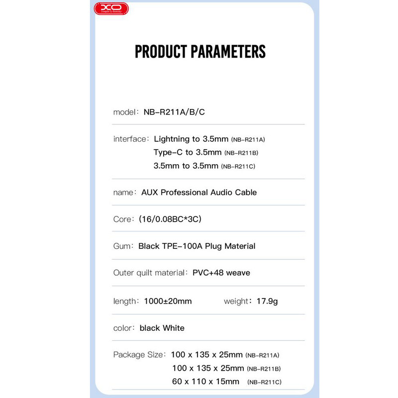 کابل تبدیل usb-c به جک 3.5 میلی متری ایکس او مدل nb-r211b طول 1 متر