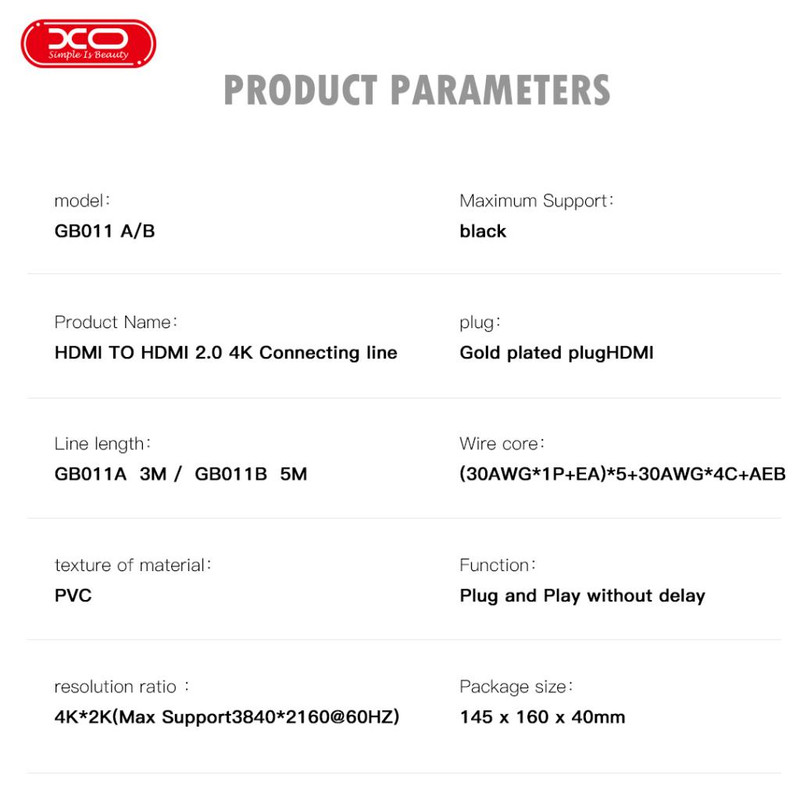 کابل HDMI ایکس او مدل gb011B طول 5 متر