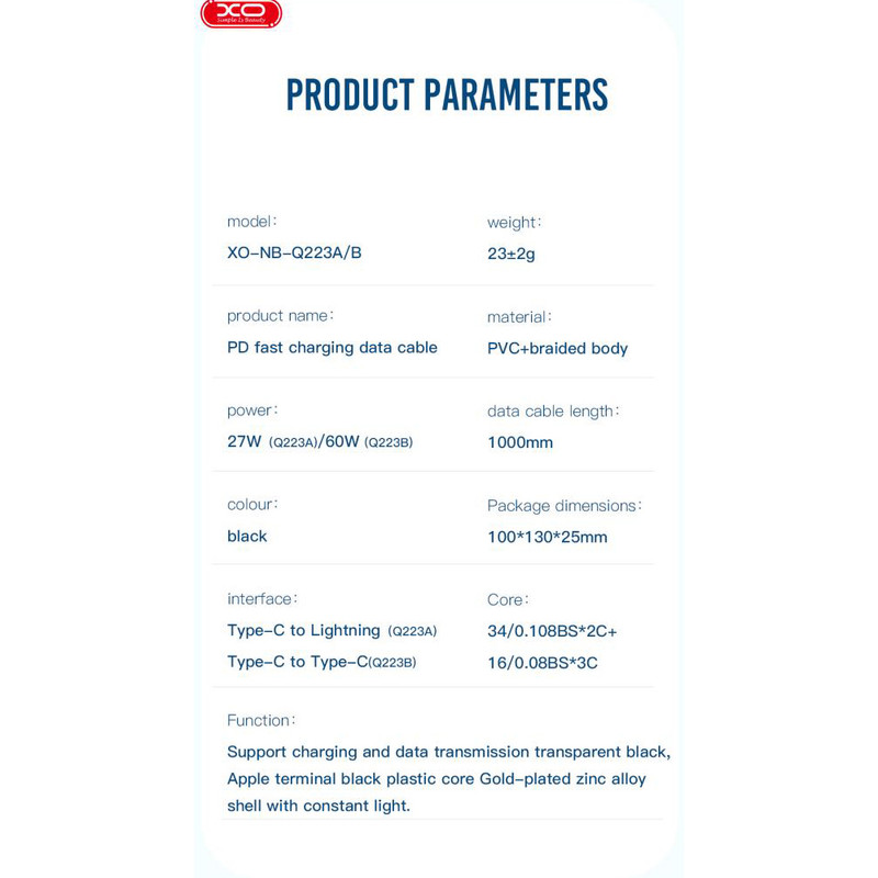 کابل تبدیل usb-c به لایتنینگ ایکس او مدل nb-q223a طول 1 متر