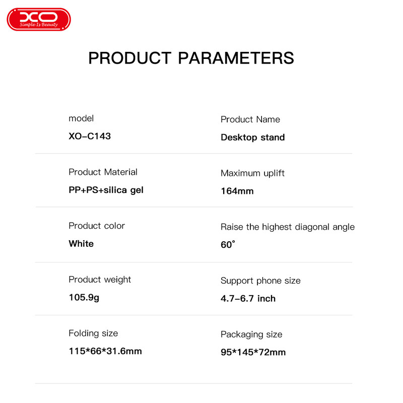 نوع پایه نگهدارنده گوشی و تبلتمناسب برای استفاده روی میزابعاد95*45*72 میلیمترمناسب برایاستفاده روی میزقابلیتهای دستگاهبدون قابلیت ویژهرنگسفید