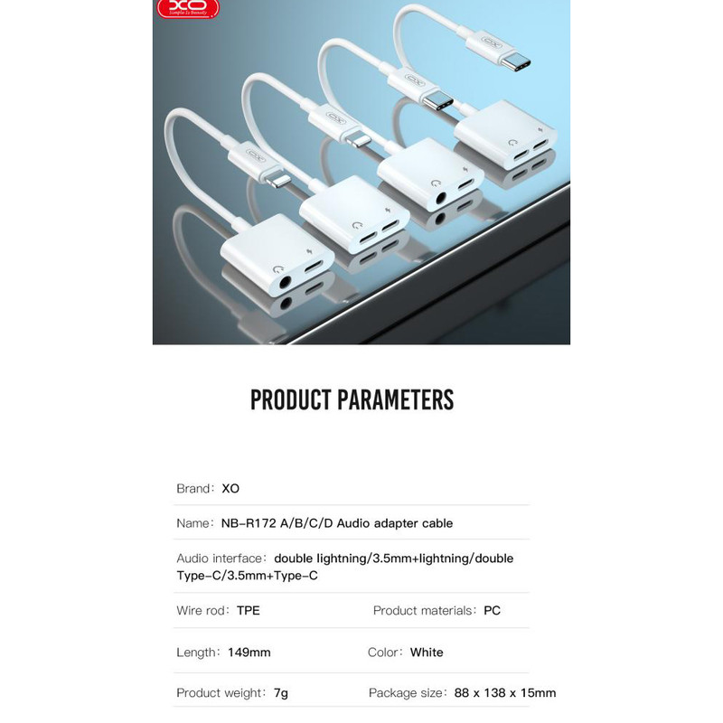 مبدل لایتنینگ به جک 3.5 میلیمتری ایکس او مدل nbr172b طول 1.5 متر