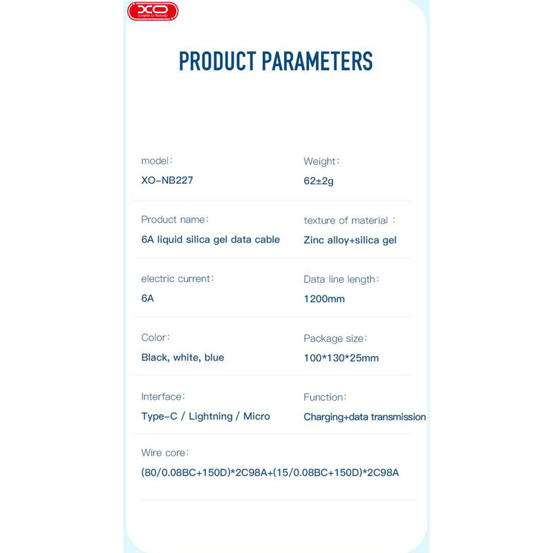 کابل تبدیل usb به لایتنینگ ایکس او مدل nb227 طول 1.2 متر