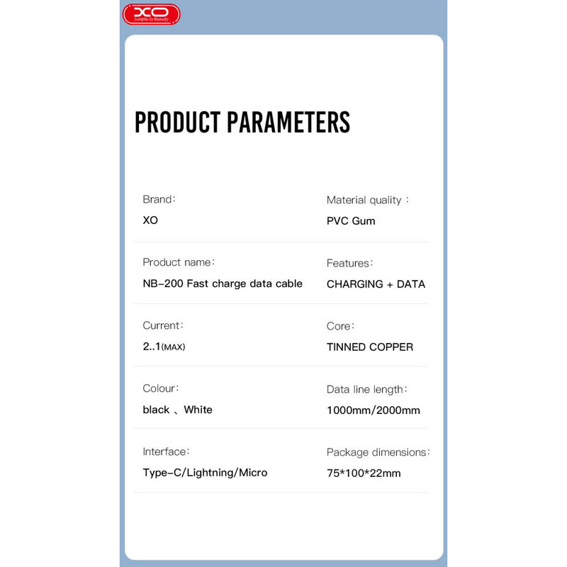 کابل تبدیل usb به microusb ایکس او مدل nb200 طول 2 متر