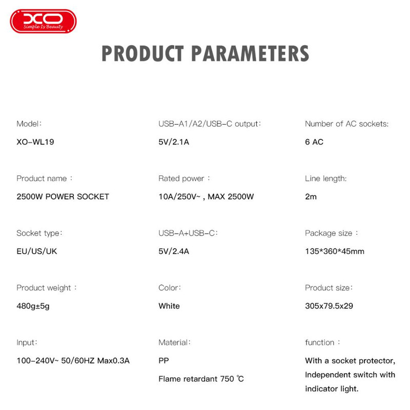 طول کابل2 مترتعداد پورت USBدو عددحداکثر جریان انتقالی2.4aجنس بدنهچلاستیکحداکثر توان قابل پشتیبانی5vتعداد پریزها5 عدد