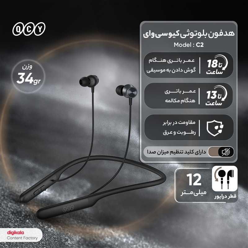 متاسفانه این کالا در حال حاضر موجود نیست. میتوانید از طریق لیست بالای صفحه، از محصولات مشابه این کالا دیدن نمایید.هندزفری گردنی یک انتخاب جذاب برای کسانی است که میخواهند هندزفری بلوتوثی و بیسیم داشته باشند و در عین حال به دنبال یک گزینه قابل اطمینان میگردند که به راحتی از گوش نیفتد و گم نشود. هدفون بلوتوثی کیو سی وای مدل C2 یکی از مدلهای هندزفری گردنی باکیفیت است که با خیال راحت میتوانید روی آن حساب کنید. این هندزفری با این که قیمت معقول و مناسبی دارد، از ویژگیهای فنی خوبی هم بهره میبرد که ارزش خرید بالایی به آن داده است. به لطف بلوتوث 5.2 خیلی سریع و بدون تاخیر میتوانید به آن وصل شوید و از ویژگیهای آن بهره ببرید. بدنه با مقاومت در برابر تعریق و رطوبت در کنار سریهای مگنتی و ساخت باکیفیت خیال شما را از هر نظر راحت میکند و برای شنیدن موسیقی با وضوح بالا و مکالمه شفاف و بدون نویز هم میتوانید روی آن حساب باز کنید.